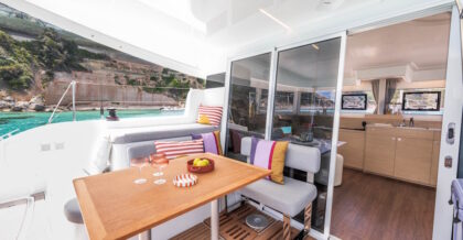 Lagoon’s priorities are clear here. The cockpit and saloon are connected into one living space when needed, improving sightlines, airflow, and social flow on board. This is a major difference from the more segmented feel of the 380.