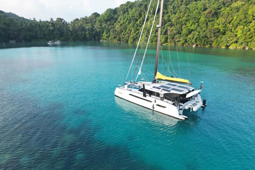 There are also options for solar power and electric propulsion for an eco-friendly set-up and a variety of helm, propulsion, and sail plan options. So they offer a mid-raised helm as standard, for example but also offer twin aft helms. You can opt for daggerboards or fixed keels, all at a competitive price point.