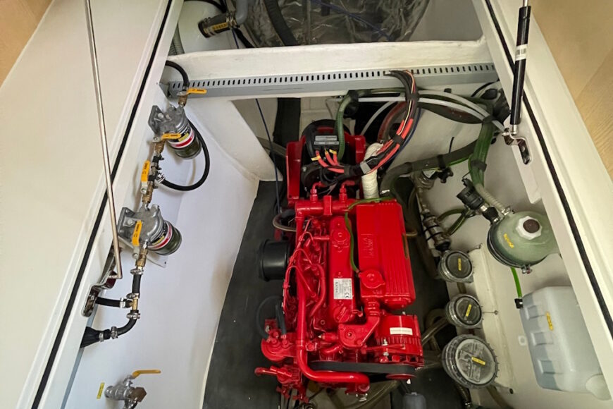 The 45SC standard set up is 2x 30HP Inboard diesels (shaft drive) but there are also options for hybrid-electric systems (Beta Marine Hybrid: parallel-hybrid).
