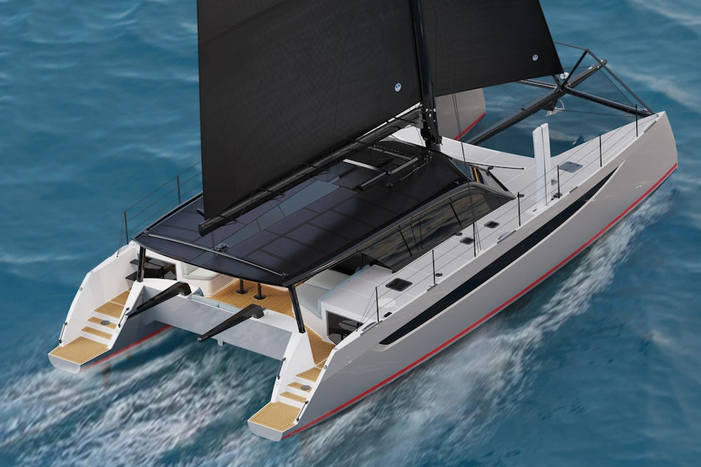 One of the big splashes of the year. A 2026 launch: positioned as a lighter, sportier, modular yacht in the entry sporty-cruiser segment. The successor to the classic Open 40 that will “sail better than most 40–42ft cruising cats” and still offer great comfort.