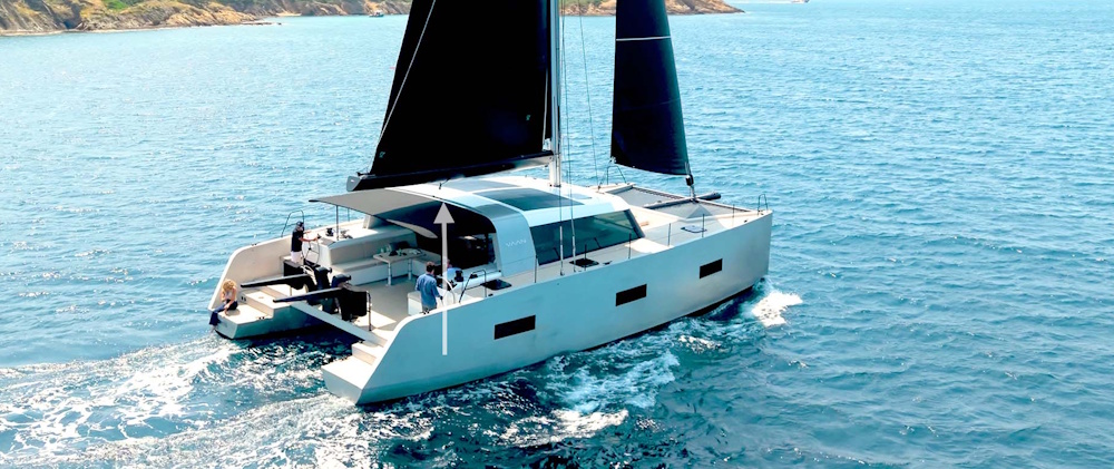 A good rule of thumb is to set your boom position with the traveller based on the apparent wind direction (angle of attack of the wind). Then fine tune the twist in your mainsail with the main sheet according to the conditions. Most catamarans don’t have a vang (some Leopards do). Set your sail position and the shape with the traveller and mainsheet using your telltales.